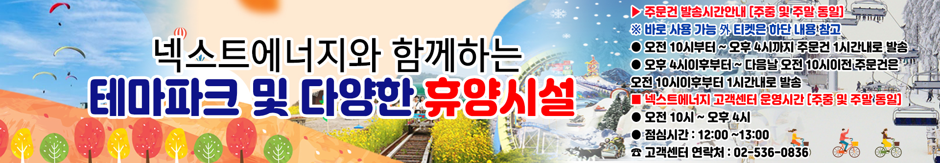 ※※※※추석연휴기간 넥스트에너지 운영시간 ※ 파라다이스 스파도고 모바일티켓 판매 개시 → 종이티켓 주문시 필독사항[남산전망대 PKG 및 블루오션레지던스 호텔 숙박권] ※ 2025년 넥스트에너지 고객센터 운영시간 안내 ※ 게시판 문의를 통한 환불신청 불가